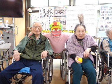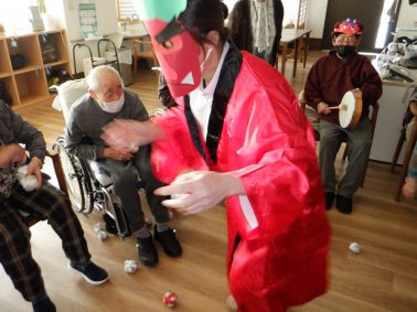 時にはご利用者が鬼に扮することも・・・ 手加減してくれそうな鬼さんです👹
