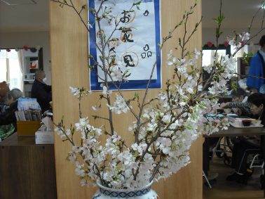 生活相談員が開花する前から準備していた桜の木🌸 4月9日の花見会に合わせ満開にするのが毎年一苦労です💦 今年も上手くいきました🙌