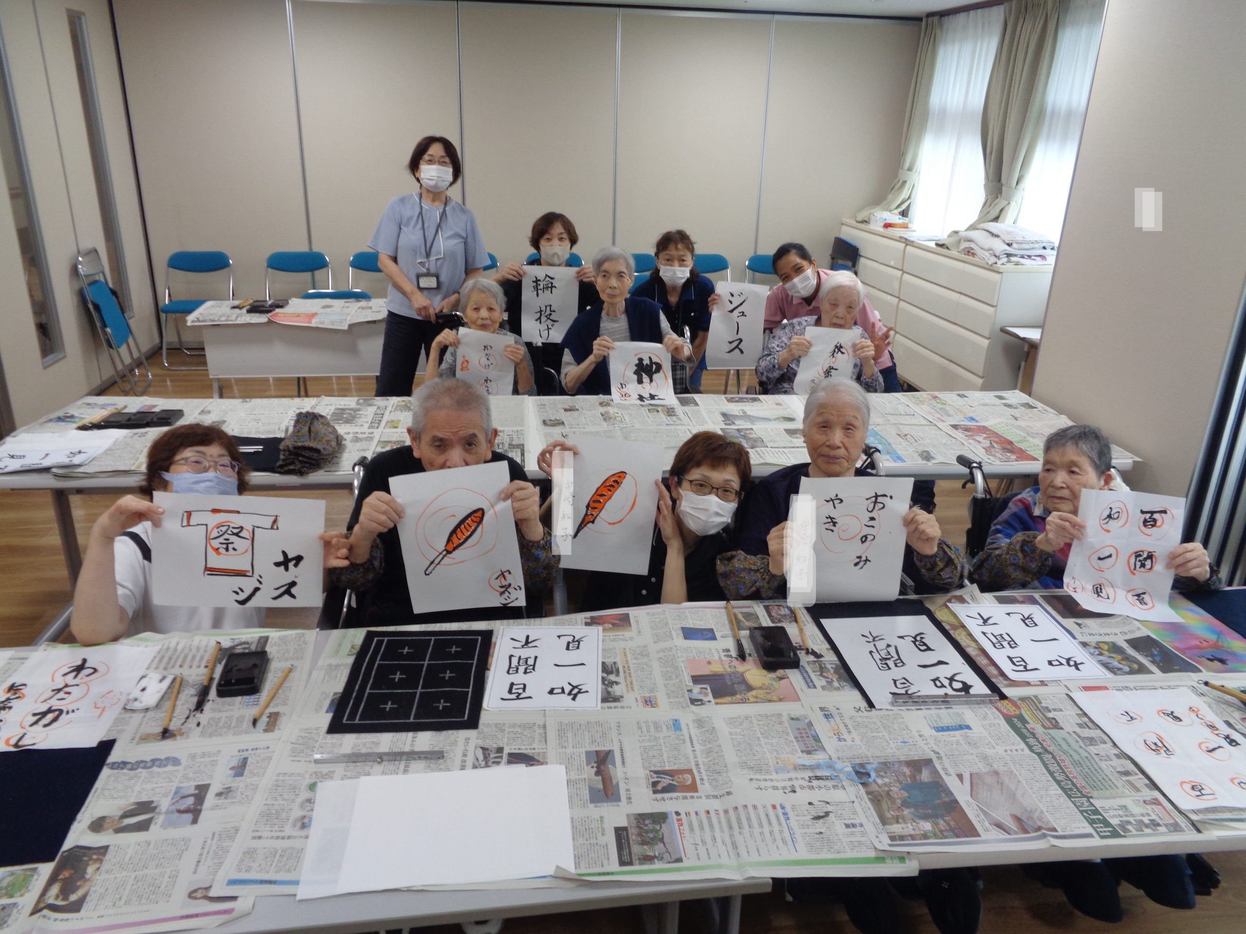 今日の書道クラブは、来月に行う『秋まつり』に関する物を書いていただきました。