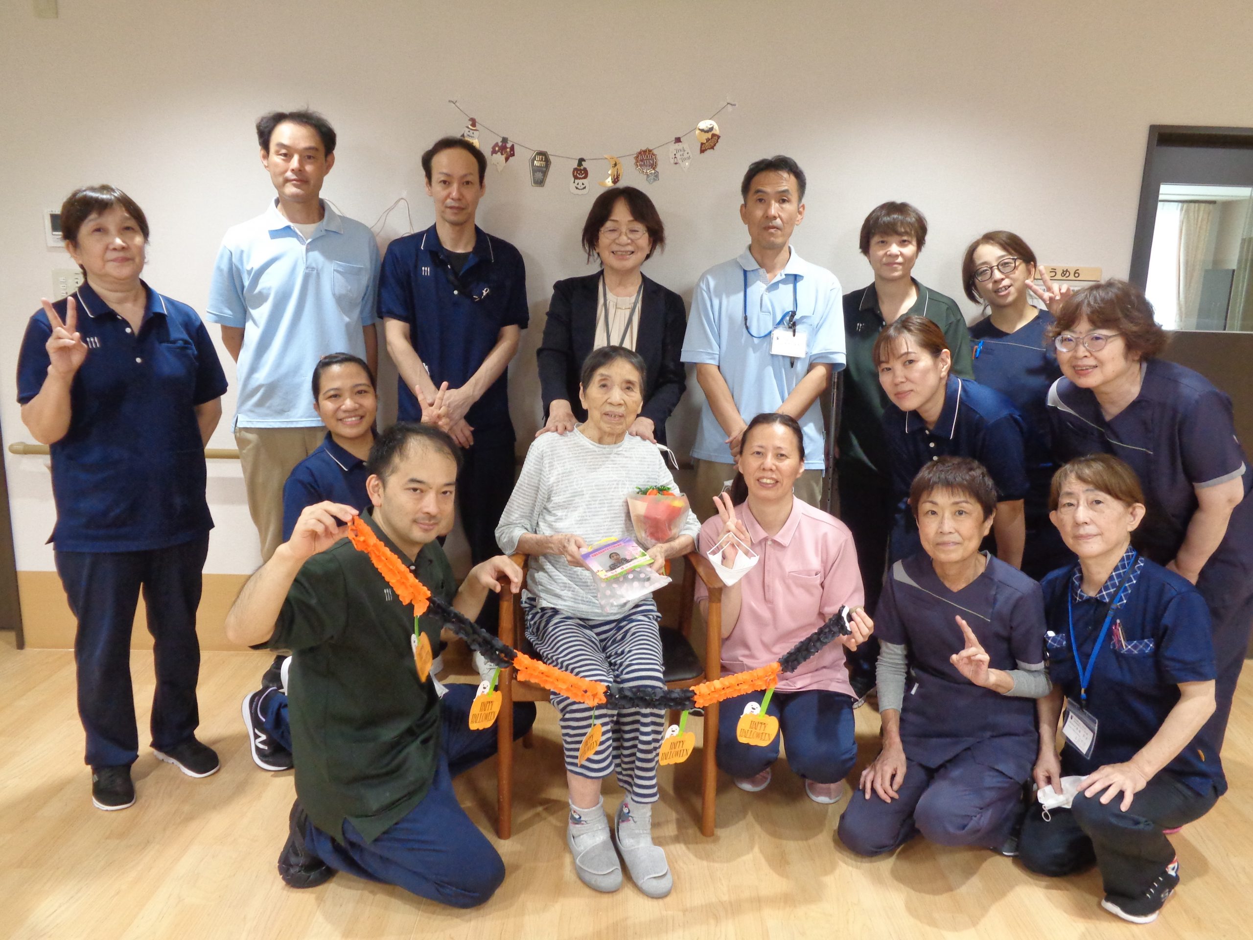 3階フロアでは、ハロウィン🎃の飾りを持って集合写真!
