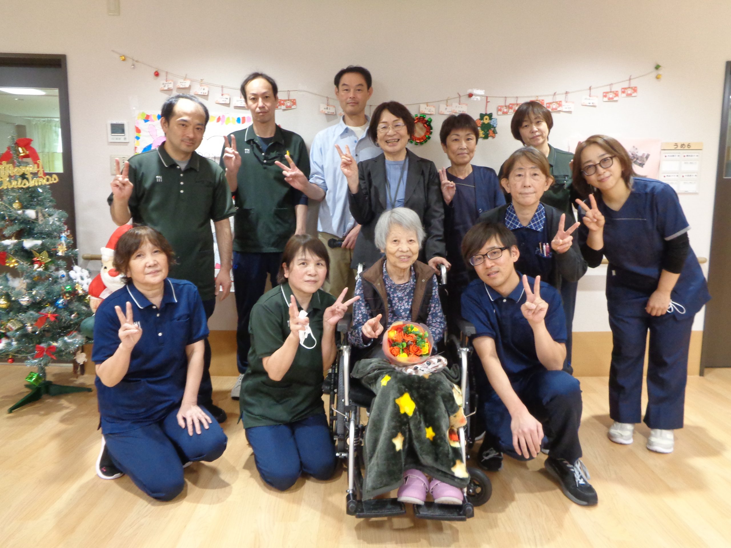 2025年12月17日(水) 12月の誕生会 ~大勢に囲まれて~ 大勢からお祝いされて照れくさそうなTさん。 今日の昼食は、ちらし寿司・和風ハンバーグ・茶碗蒸し・すまし汁・ミニケーキです。 いっぱい召し上がってください🤗 一覧に戻る