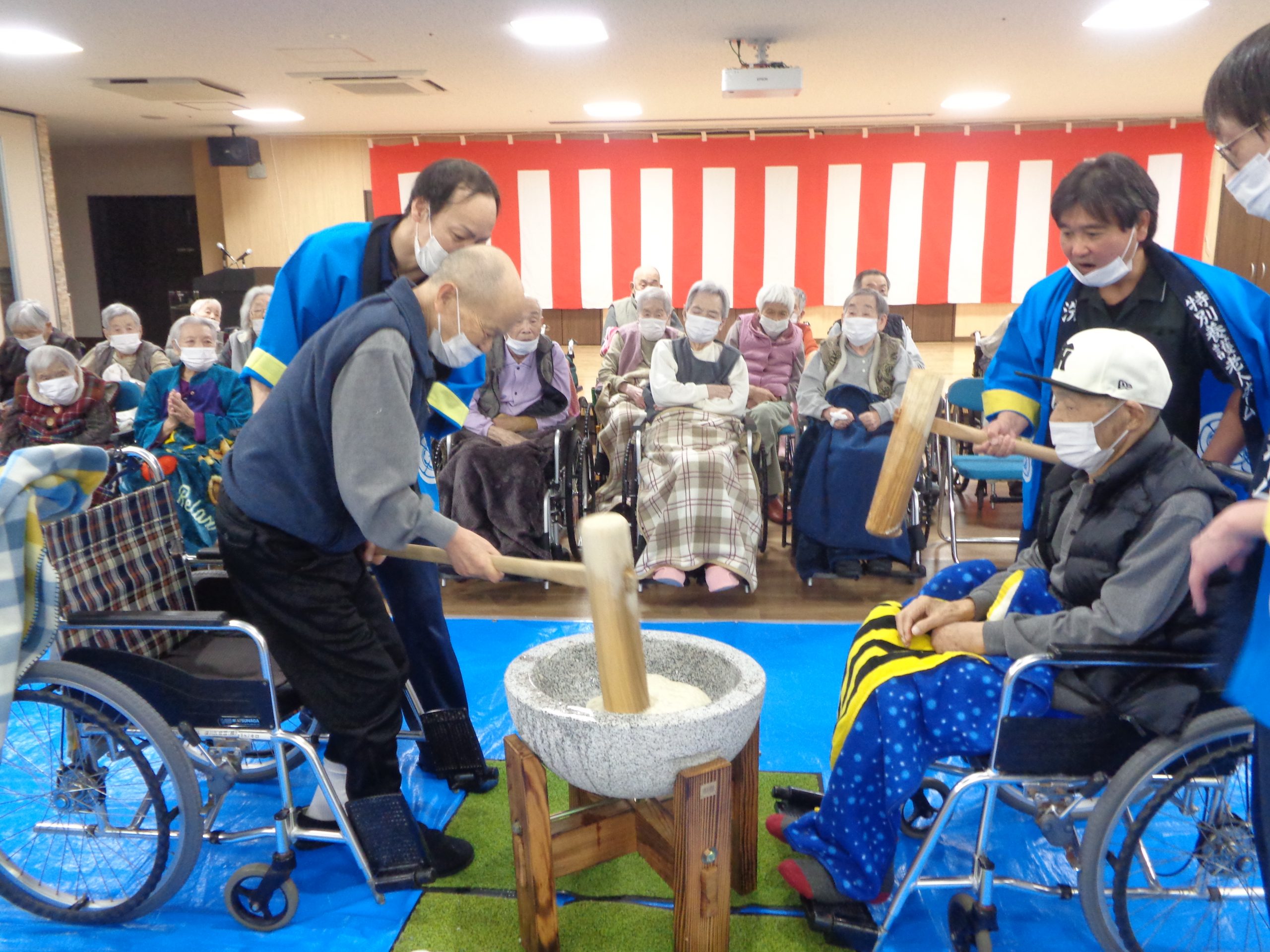 2025年12月26日(金) もちつき ~みんなで一緒に~ 今日は年末恒例の「もちつき」をしました。 初めは男性職員がついていたのですが、途中から利用者さまも楽しんで参加されました。 「昔は、餅つきよったんよ~」「懐かしいわ~」と言っておられました。 一覧に戻る
