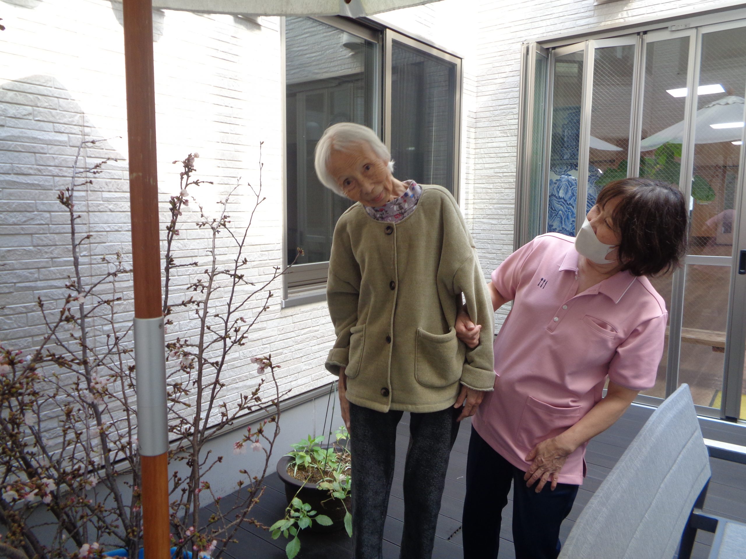 「花見会」に向けて、Y生活相談員が準備している桜です。