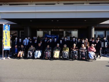11月22日土曜日、大野中とライオンズクラブの皆さま、総勢30名が来られました。 理学療法士から車イスの操作方法の説明があり、皆さんとても真剣に聞いておられました。