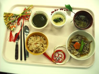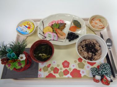 明けましておめでとうございます。 本年もよろしくお願いいたします。 元旦の昼食はおせち料理が出て、お正月を楽しんでいただきました。