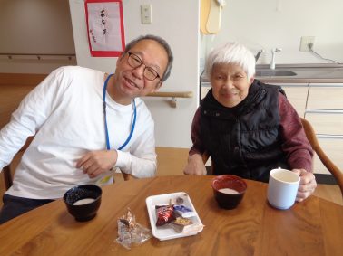 いつも面会に来られる優しい息子さんです。 一緒に甘酒を召し上がっていただきました😄