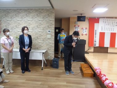 9月18日(木)、敬老祝賀会を盛大に行いました。 1階フロアには、ご利用者(特養・ショート・デイサービス)・ご家族(46名)・6区7区女性会(22名)・職員が集まりました。 やっとこの新しいステージを………