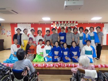 6区と7区の女性会の皆さまに演芸をお願いしたら、快く引き受けてくださいました。 女性会の皆さまと洗心園の間で調整をしてくださったHさま、お忙しい中、ありがとうございました。