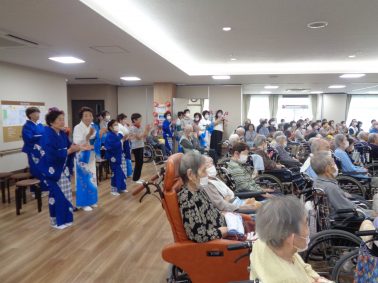 女性会の皆さまが、職員一と緒に踊って会場を盛り上げてくださいました。 「洗心園音頭知っとるよ~」「一緒に踊ったよ~」と嬉しい言葉をかけていただきました🥹